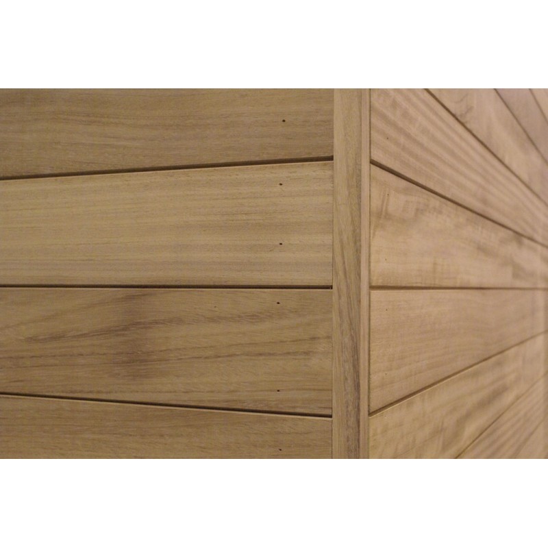 - L'Iroko 15x130mm (bois exotique d'Afrique. Ses propriétés font de lui un bois exceptionnel, ultra-résistant et naturellement imputrescible).